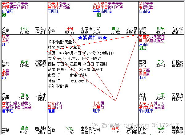 姚慕莲生于嘉兴的一个世家豪族,在清末曾捐了个二品衔。辛亥革命后,姚寓居上海,与人合伙接管上海自来水厂,改组为上海内地自来水公司,并出任董事长兼总经理。按其八字,地支酉、丑合2个金局,禄太多了,八字喜火,官杀破禄为用神。丁火透于年干,因此得祖荫;又走了40年的木火大运,跻身上流社会。抗日战争后,姚慕莲的经济状况一落千丈,显然是因为大运走食伤,食伤克官杀,把用神浇灭了。