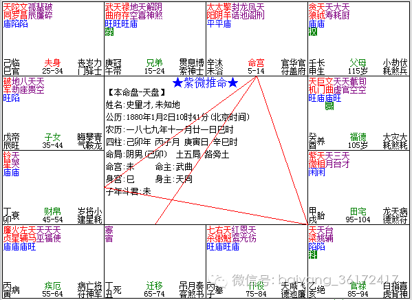 值得注意的是,张勋逝于1923癸亥年,是在癸未大运之中。天干癸水伤官制杀太过,地支未,是木之墓库,财官之气皆绝,可算是寿终正寝。史量才之命和张勋相反,本为身弱财多,未运则财杀皆旺,书云:“身弱煞强,有财引鬼盗气,非贫则夭”。
