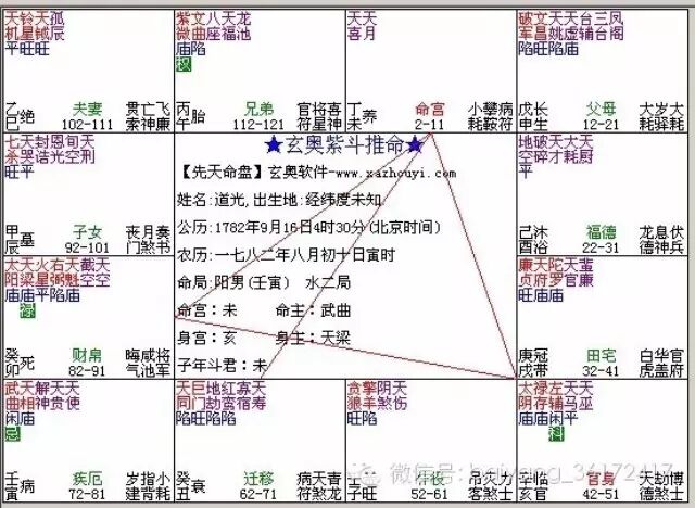 有趣的是,排出傅振邦的紫微斗数命盘,竟然和他的贵人——道光皇帝之造雷同,君臣都是“明珠出海”格。傅振邦被道光皇帝钦点为御前侍卫,缘分或许就在命盘之中,但他们当时不知道而已。道光此人,大概也爱好武术兵器,否则在“癸酉之变”时也不会有神勇表现,而傅振邦则是一个“双枪将”,可双手握持火枪射击,君臣俩存在惺惺相惜的基础。