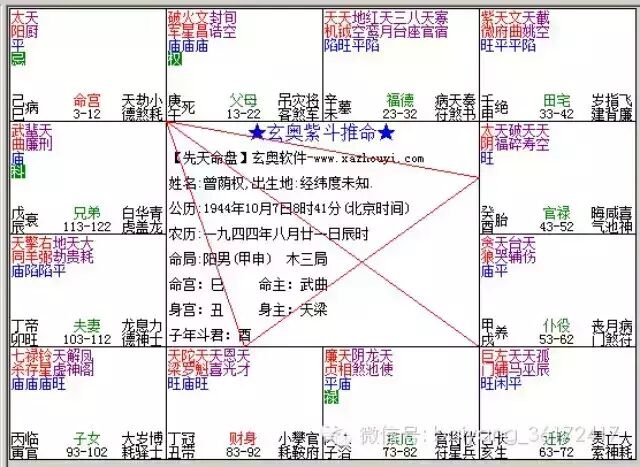 有趣的是,这个命盘和明代江湖郎中、《神峰通考》作者“张楠”之造很相似。因太阳化忌入命,会巨门和陀罗星,为“口舌求财”的组合。命宫都有一颗“天厨星”,表示他们命中注定和“口服物”有缘。张楠的命盘,请参阅“阅读原文”的“医卜同源”一文。