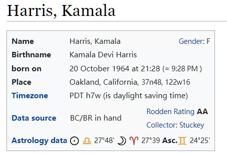 卡玛拉·黛维·哈里斯Kamala Devi Harris),1964年10月20日出生于加利福尼亚州奥克兰: