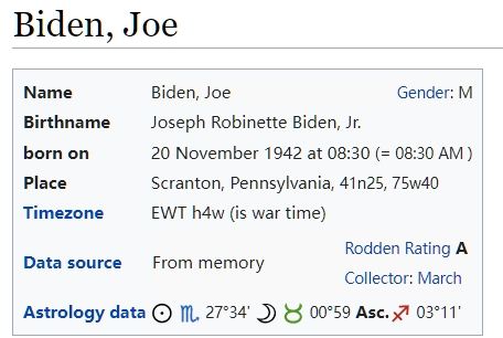 小约瑟夫·罗比内特·拜登Joseph Robinette Biden Jr.),通称“乔·拜登”(Joe Biden),1942年11月20日早上出生于美国宾夕法尼亚州斯克兰顿(Scranton),具体时间不详,大约是8点: